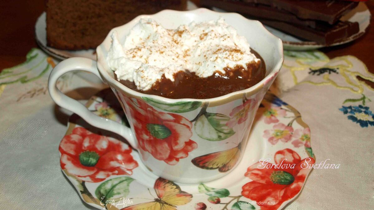 Сливки (10%) соединяем с водой, доводим до кипения и добавляем шоколад с сахаром. Варим на очень медленном огне, помешивая до полного растворения шоколада и сахара. Оставляем на несколько минут на огне и даем шоколаду потомиться, как это было в фильме. - Шаг 3