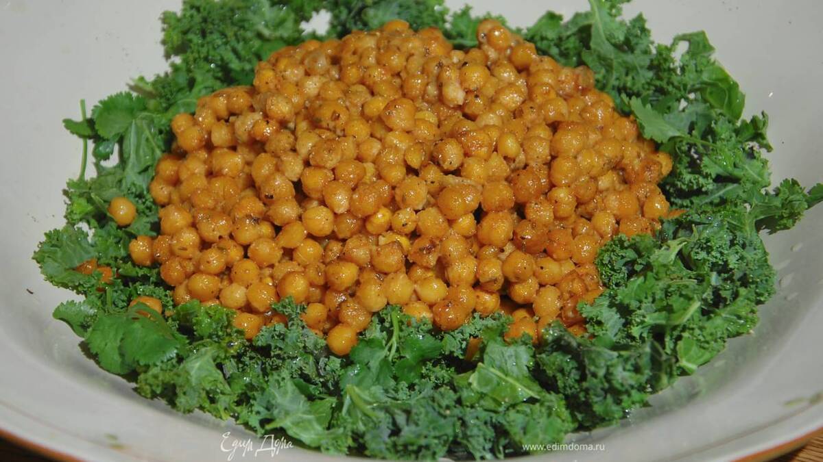 Салат из кейла и запеченного пряного нута