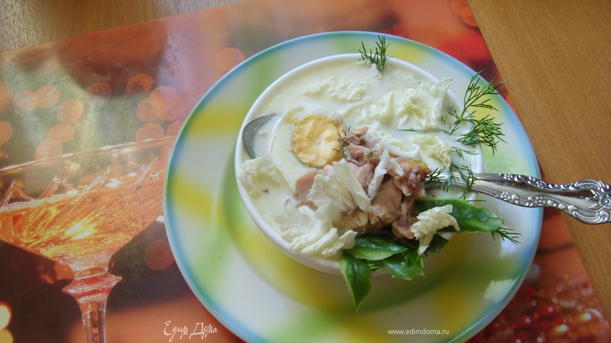 - Шаг 1Говядину промыть, срезать сухожилия и пленки, положить в горячую воду и варить при слабом кипении. Сваренный бульон процедить, мясо разрезать на порционные куски. Спаржу очистить от твердых частей, после чего разрезать на куски, промыть, отварить в подсоленной воде и откинуть на дуршлаг. В горячий бульон положить мелко нарезанный и обжаренный на масле лук, нарезанный кубиками картофель и варить на небольшом огне до готовности картофеля. После этого добавить в суп отваренную спаржу, пассерованную и разведенную бульоном муку, довести до кипения. За 5 минут до подачи влить в суп настой шафрана. При подаче посыпать суп измельченной зеленью, украсить варёным яйцом и подать отдельно сливки.