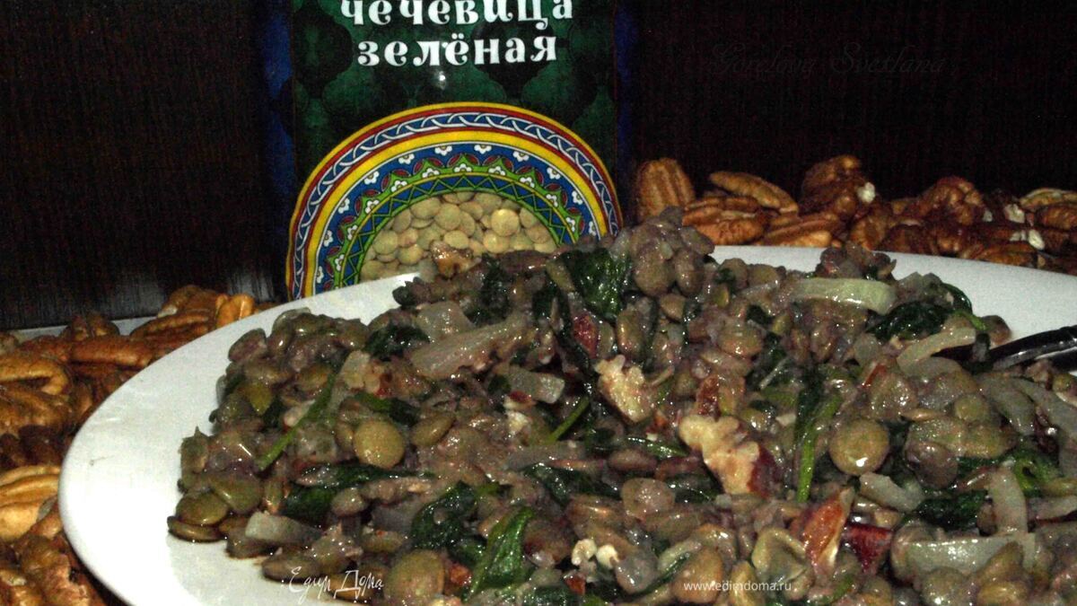 Зеленая чечевица со шпинатом и орехами пекан
