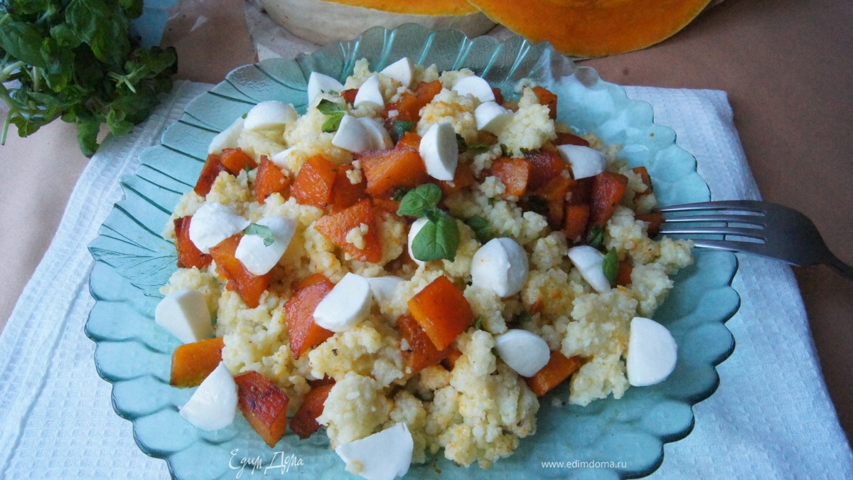 Салат с тыквой, пшеном и моцареллой