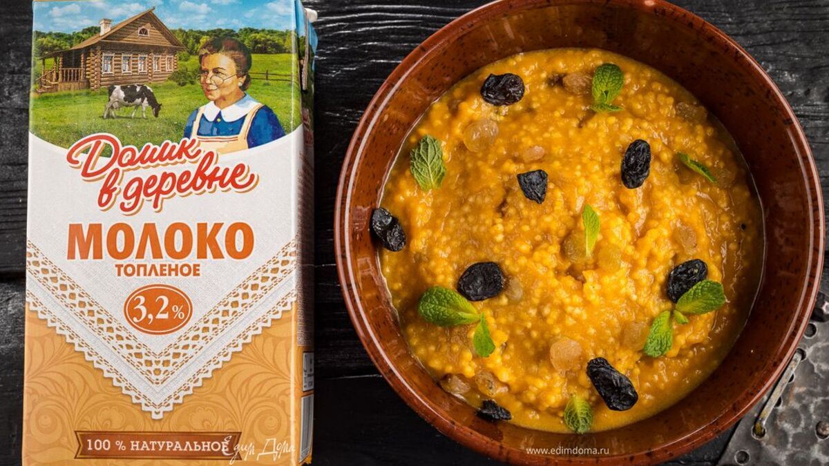 Заливаем тыкву топленым молоком «Домик в деревне», ставим на огонь.