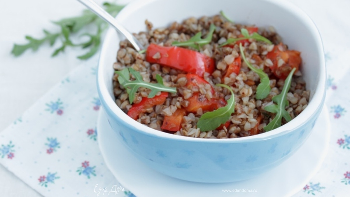 За 5 минут до конца запекания выложите перец на гречку и запекайте дальше. - Шаг 4