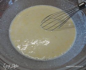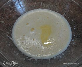И просеять рисовую муку, смешанную с содой. Хорошо перемешать венчиком, чтобы не было комочков и оставить на 30 минут.