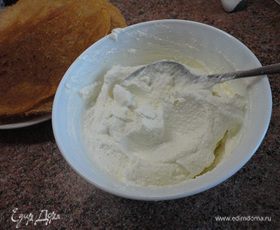 Приготовить начинку, смешав все ингредиенты. Молоко я вначале не планировала, но творог оказался достаточно плотным, поэтому решайте сами, нужно ли вашему творогу молоко.