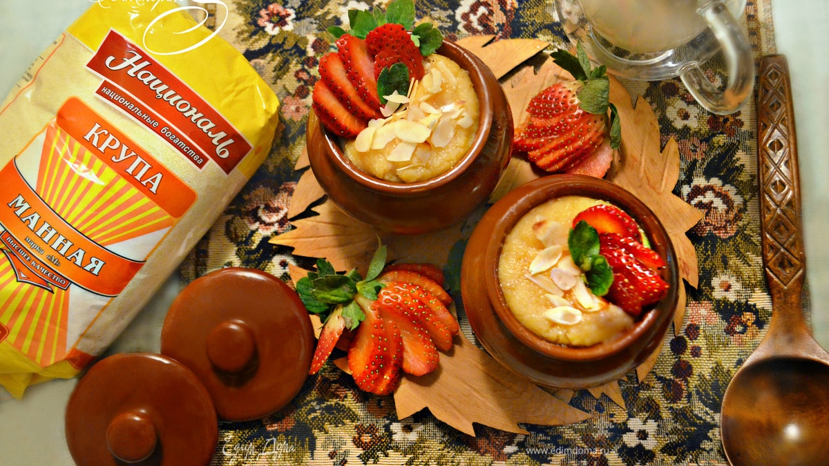 Манную кашу, конечно же, любят далеко не все. Но вот попробуйте приготовить гурьевскую кашу, используя манную крупу. Томленая в духовке, на топленом молоке с карамельной корочкой, она по вкусу напоминает крем-брюле, а миндальные лепестки и клубника так прекрасно дополняют вкус каши, что она становится больше похожа на нежный десерт. Такая каша просто идеальна для завтрака — вкусная и питательная, хороша как в холодном, так и в горячем виде. Приготовьте, и, я уверена, вы не пожалеете!