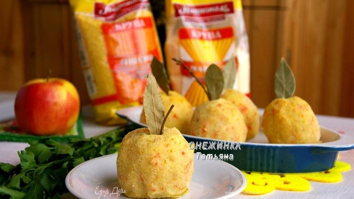 Сочетание картофеля с пшеном исходит корнями в белорусскую кухню. У нас есть такое блюдо — бульбяная запеканка с пшеном. По мотивам этого рецепта я приготовила картофельные «яблоки», оформленные благодаря идее белорусской кулинарочки
