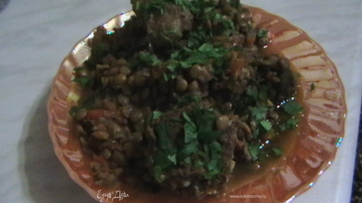 - Шаг 1Говядину вымыть, порезать на порционные кусочки и тушить с белым вином 1.5 часа.Лук нарезать кубиками,морковь натереть на крупной терке и добавить к говядине,обжарить на сильном огне до золотистой корочки,посолить,поперчить,добавить приправу "хмели-сунели".Чечевицу предварительно замочить на 6 часов, если нужно см.на упаковке.В казанок с говядиной добавить чечевицу,залить водой до уровня с чечевицей.Тушим еще 40-50 мин. до готовности.