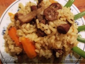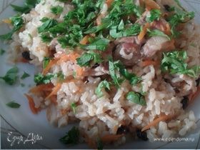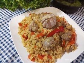 У меня чечевица была коричневого цвета, поэтому цвет у плова не очень,берите чечевицу желтого или красного цвета - будет красота.
