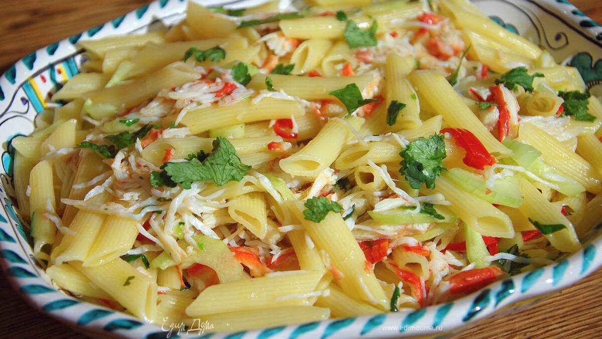 Пенне с огурцом и крабовым мясом