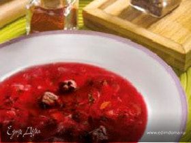 - Шаг 1Картофель, морковь и свеклу очистить, нарезать небольшими кубиками. Томат-пюре развести небольшим количеством воды. Все продукты, кроме зелени, положить в горшочек или кастрюлю, влить приготовленный бульон (воду), добавить соль и перец, закрыть крышкой и поставить в умеренно разогретую духовку на 55 мин. За 3 мин. до конца варки в борщ добавляют измельченную зелень. Можно готовить на газу на маленьком огне. Приятного аппетита!