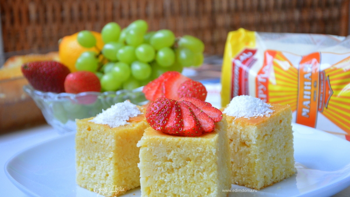 Выпекать в хорошо разогретой духовке при 170°С 35 — 45 минут на среднем уровне. Залить горячий манник сиропом. Оставить на ночь. - Шаг 7