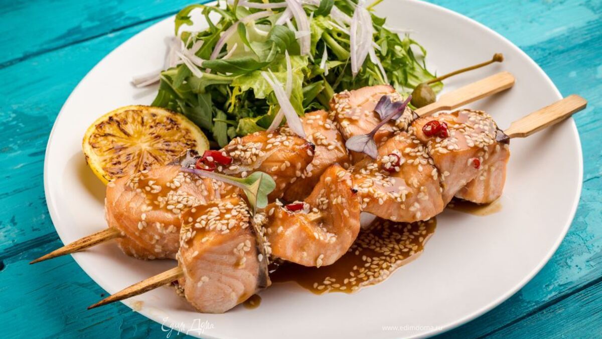 Готовим аппетитные шашлычки из лосося в медовом маринаде!