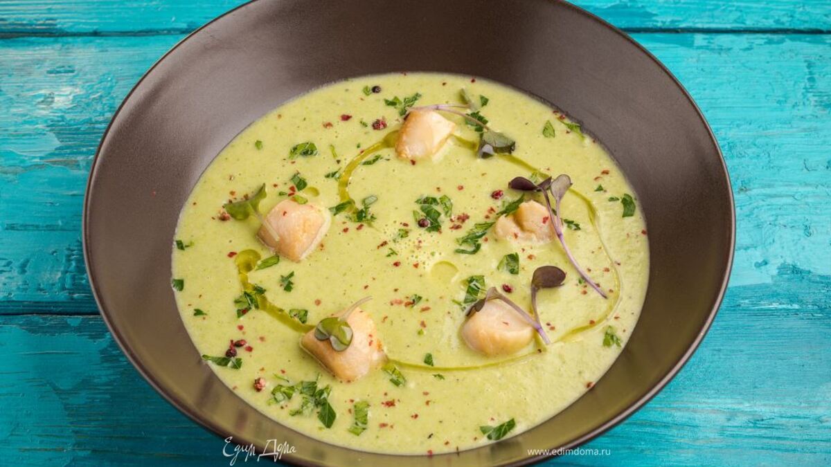 Крем-суп из брокколи с морскими гребешками
