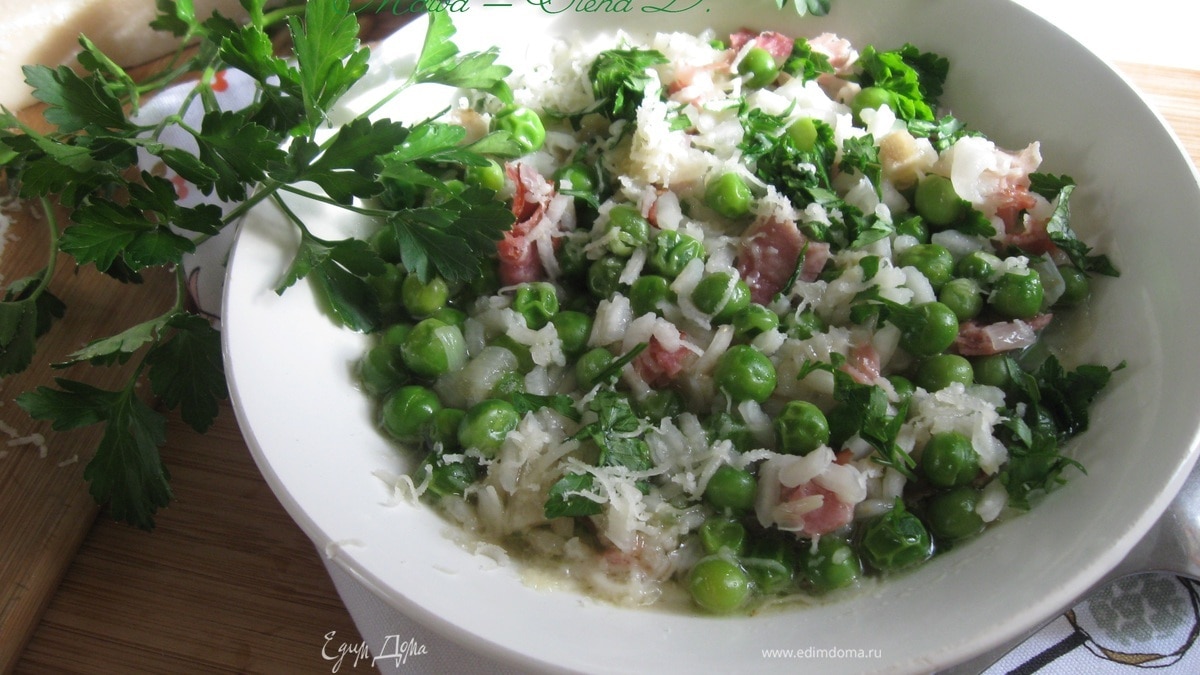 Risi e Bisi («Рис и горошек») — очень вкусное, широко известное в Италии блюдо родом из Венето. Это очень густой суп или чуть жидкое ризотто. При сервировке к нему подают ложку, а не вилку. Когда-то блюдо выставлялось на нашем сайте, но, поскольку мой рецепт отличается от опубликованного ранее, я хочу вас с ним познакомить. За него я благодарю Луку Марчиори, чьими советами при приготовлении я пользовалась, публикую с изменениями.