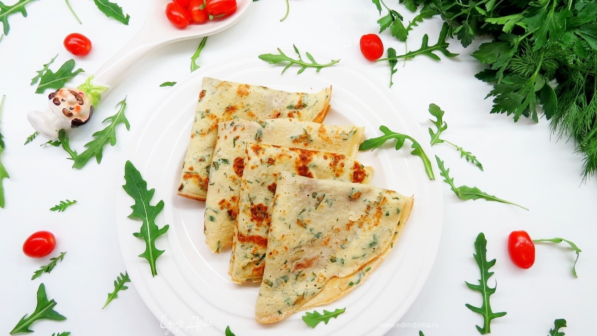 Когда-то давно нашла этот рецепт творожных блинчиков на просторах интернета и с тех пор пользуюсь им постоянно. Блинчики получаются очень вкусными и нежными, с выраженным творожным вкусом, который отлично оттеняет зелень. Эти блинчики едят мои дети, хотя творог в чистом виде не любят. Для меня, как любителя творога, этот рецепт идеален! Попробуйте и вы!