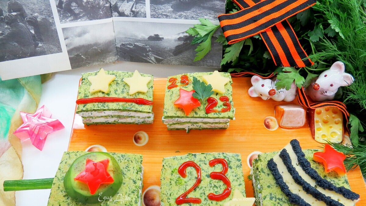 Украсить шпинатные кубики можно как душе угодно. Я решила их сделать тематическими в честь предстоящего Дня защитника Отечества.