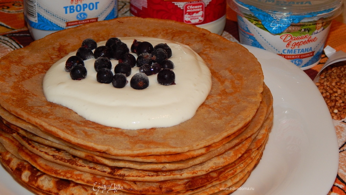 Блины гречневые с творожным соусом