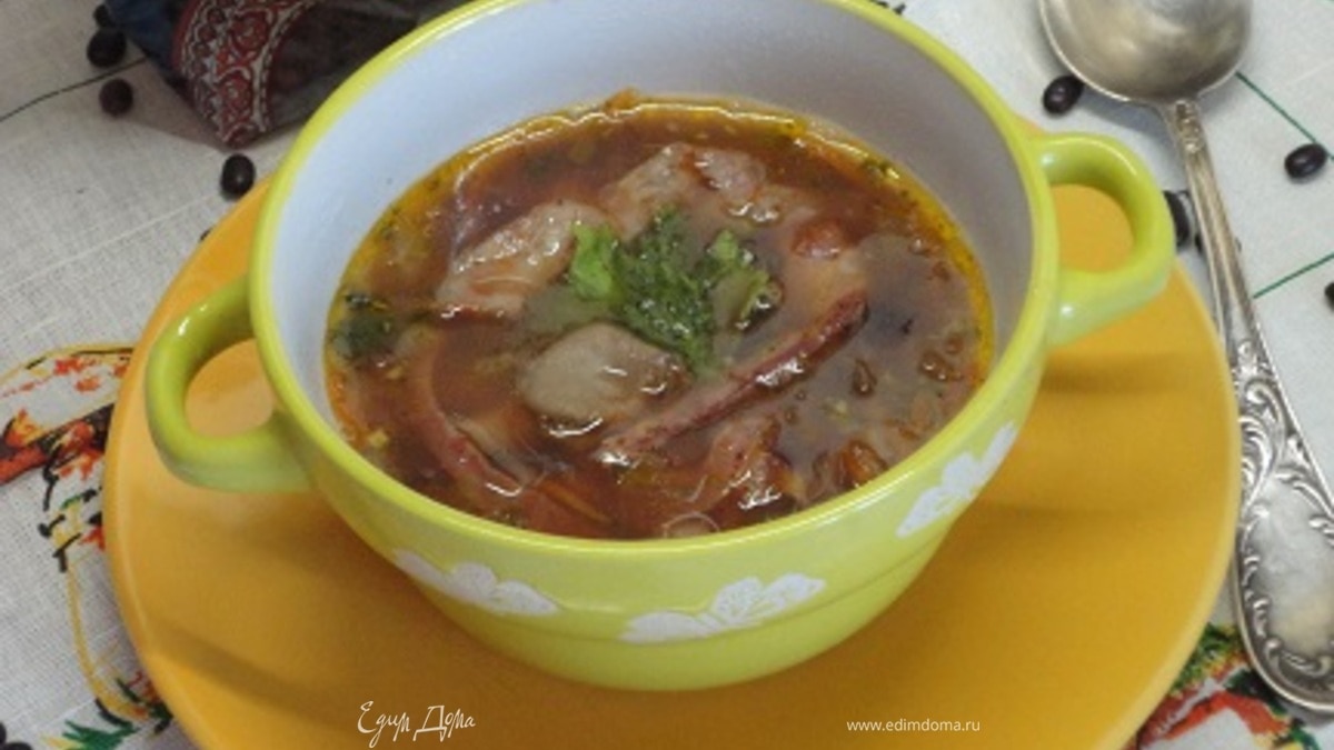 Фасолевый суп с грибами и копченостями