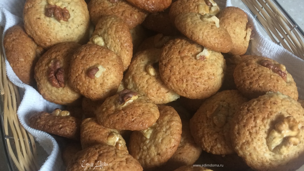- Шаг 1Все ингредиенты хорошо перемешать,желательно в комбайне или миксером насадкой для теста.Тесто убрать в холодильник на 1 час. Из теста сформировать шарики величиной с грецкий орех.Выложить их на смазанный слив. маслом противень.Выпекать в нагретой до 150 град. духовке в течении 45-55 мин.Приятного аппетита!