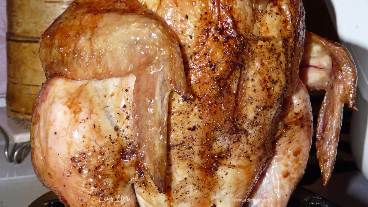 В разогретую духовку поставить курицу и после в процессе готовки обливать тушку пивом, пиво сливается в поддон и при готовке происходит испарение жидкости. На этом пару готовится курица. И так до полной готовности, когда курочка приобретет золотистую хрустящую корочку. Приятного аппетита!