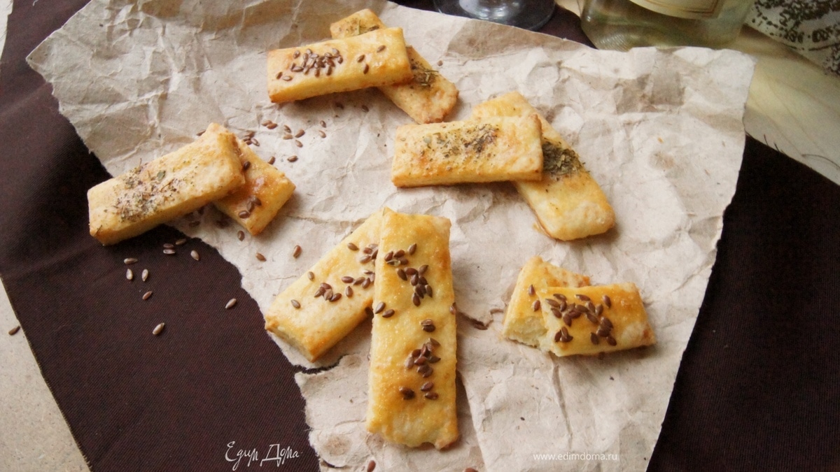 Хрустящее печенье со слоистой текстурой можно присыпать, чем пожелаете — и ароматными сухими травками, и кунжутом, и просто семечками.