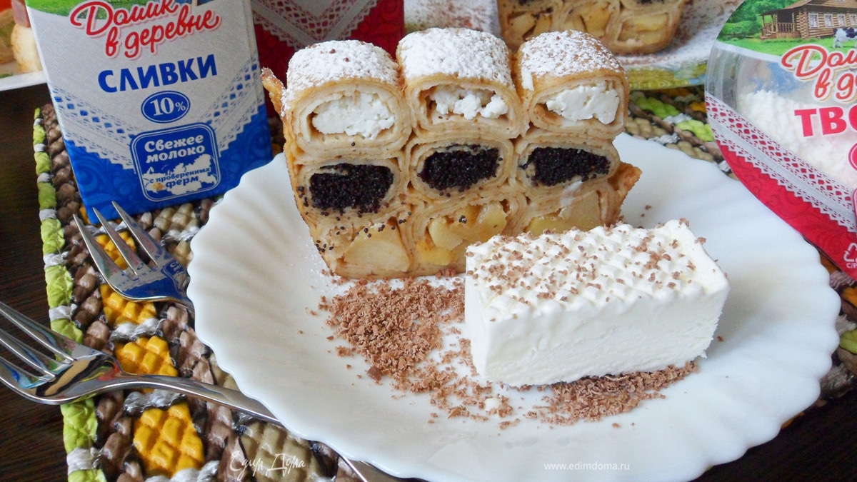 - Яблоко мак творог сахар сливки мука молоко яйца сливочное масло