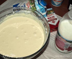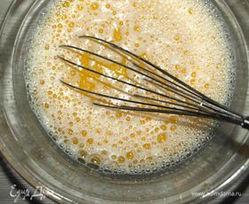 Масло растопить, остудить. Добавить к яично-молочной смеси. Взбить.
