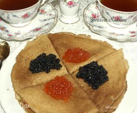 Подавать блины можно с вареньем, сметаной, икрой, сельдью. Приятного аппетита!