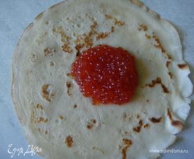 Так начался наш сегодняшний день. Блинчики на кефире получаются тоненькими, с дырочками, тающими во рту. Их можно подавать как фаршированными, так и со сметаной или ягодным соусом. Из части блинчиков я сделала мешочки с красной икоркой, а другую часть мы ели со сметанкой. Количество ингредиентов можно уменьшить вдвое.