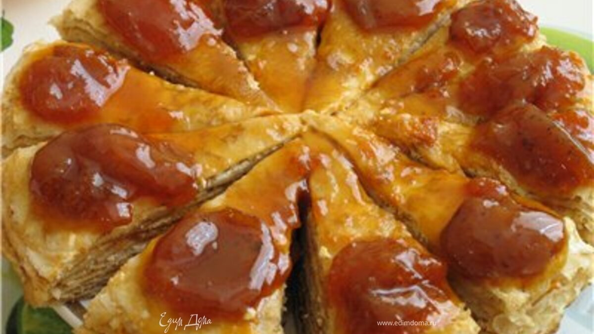 - Шаг 11. Блинчики: Яичные желтки соединить с сахаром, взбить добела. Влить немного молока, добавить всю муку. Постоянно помешивая, вливать молоко. Тесто должно быть без комочков муки. Белки взбить с щепоткой соли, вмешать их в блинное тесто. Добавить столовую ложку растительного масла. Раскалить сковородку, испечь блинчики. Смазать их сливочным маслом. 2. Пирог: На каждый блинчик намазывать слой варенья, покрыть другим остывшим блинчником. Блинный пирог готов. Нарезать его нужно кусочками как торт небольшими сегментами.