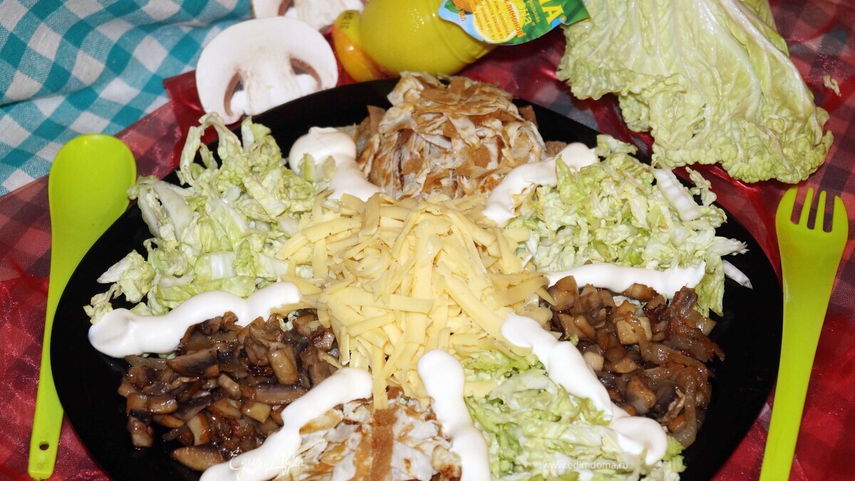 Сытный грибной салат с пекинской капустой