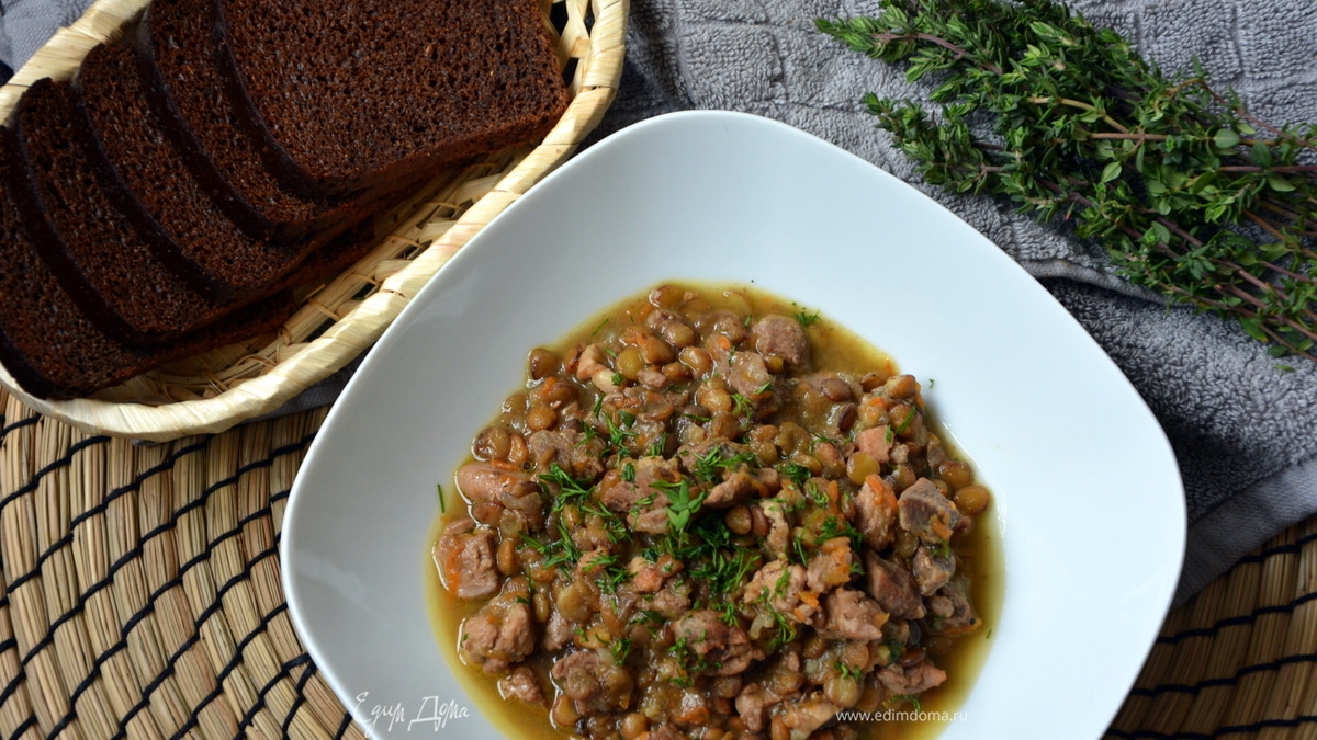 Индейка с зеленой чечевицей в мультиварке