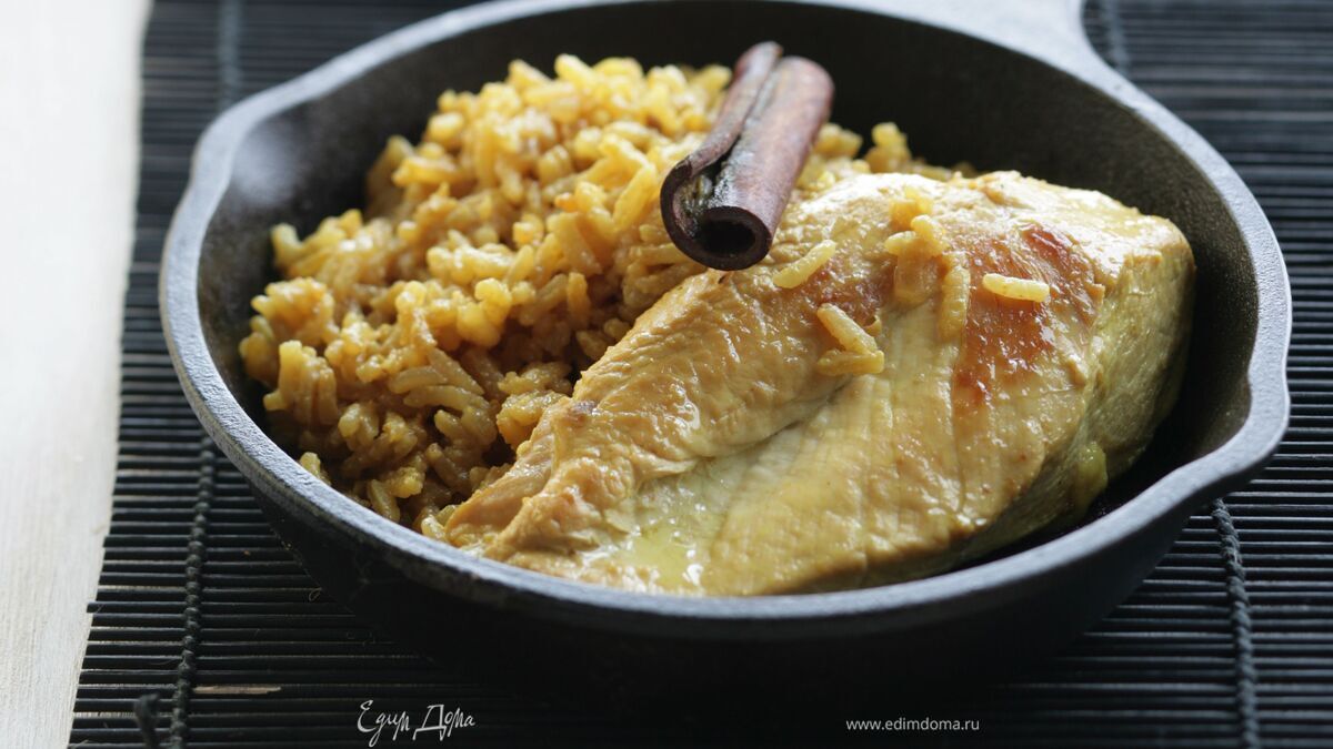 - Шаг 7Отправить в сковороду стручки кардамона, лавровый лист и палочку корицы. Закрыть крышкой и довести до кипения. Убавить огонь и готовить 30–35 минут, пока рис не станет мягким.
