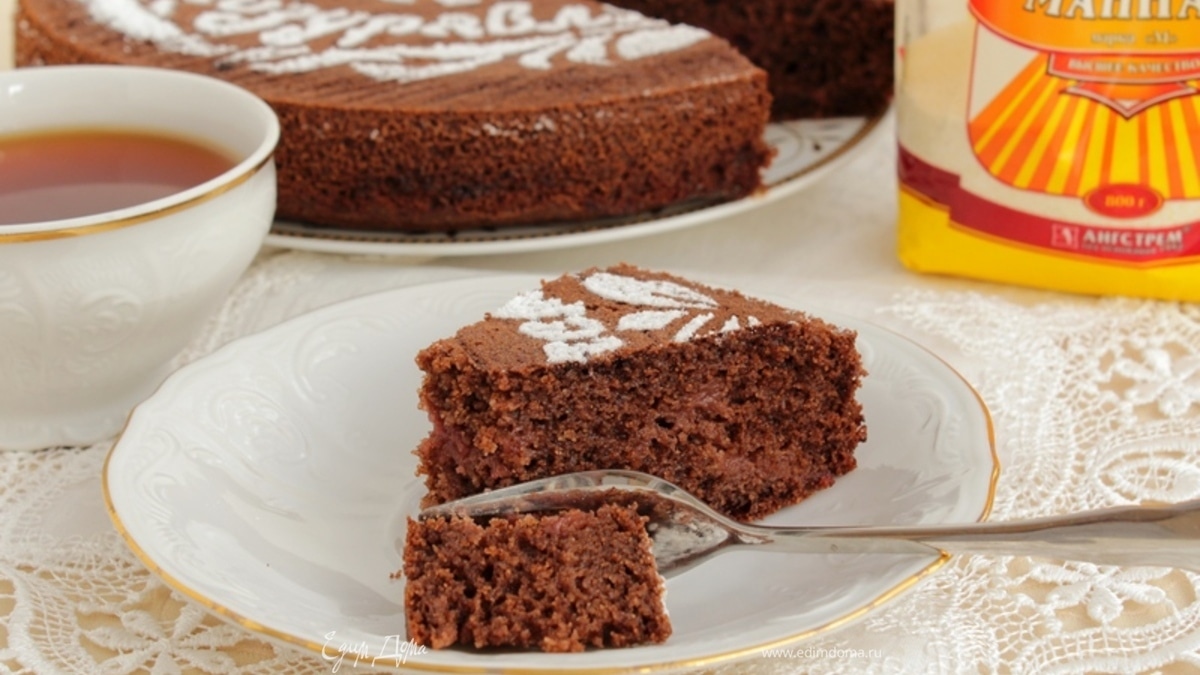 Шоколадный манник с малиновым джемом