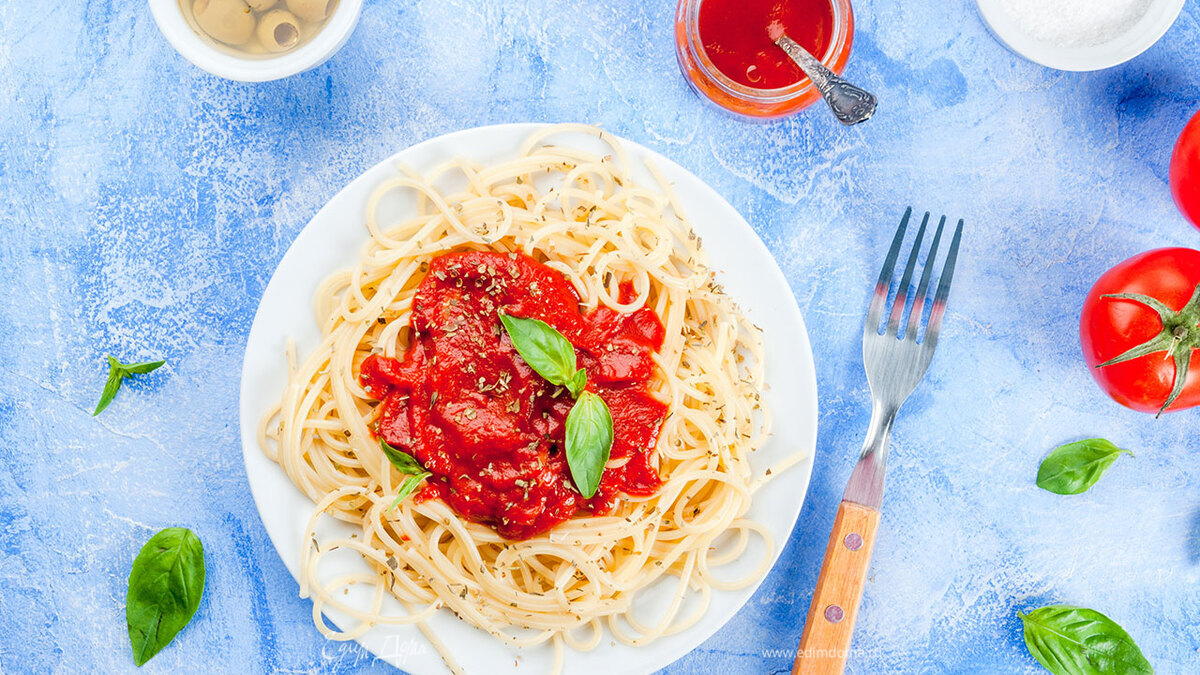 - Шаг 10Ароматная паста с томатами готова! Приятного аппетита!