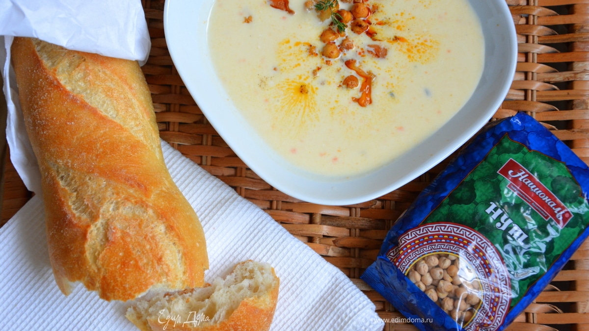 Сервировать суп жареным нутом, цветной капустой и тимьяном. Приятного аппетита!