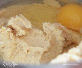 Не прекращая взбивать, добавить по одному яйца и ванильную эссенцию.