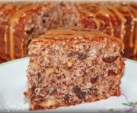 Это скорее пирог, но в рецепте он назван тортом, поэтому я соглашусь с автором. Рецепт очень простой, продукты все доступны, и такой десерт подойдет именно тем, у кого есть неприятие глютена. Вместо миндальной муки я смолола грецкие орехи, но не в муку, а так, чтобы кусочки чувствовались. Вместо чернослива у автора предлагается изюм. Мера для цукатов и изюма у автора указана в мл. Поскольку у нас для таких ингредиентов мера в граммах, то не думаю, что это существенно повлияет на вкус, но я брала все в мл. В авторском рецепте два вида сахара: коричневый и сахар-песок, оба вида по 130 граммов. Я оставила только коричневый, сладости нам хватило.