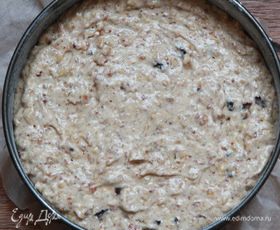 Переложить полученную смесь в подготовленную форму, разровнять и поставить в духовку на 1 час (ориентируйтесь по своей духовке).