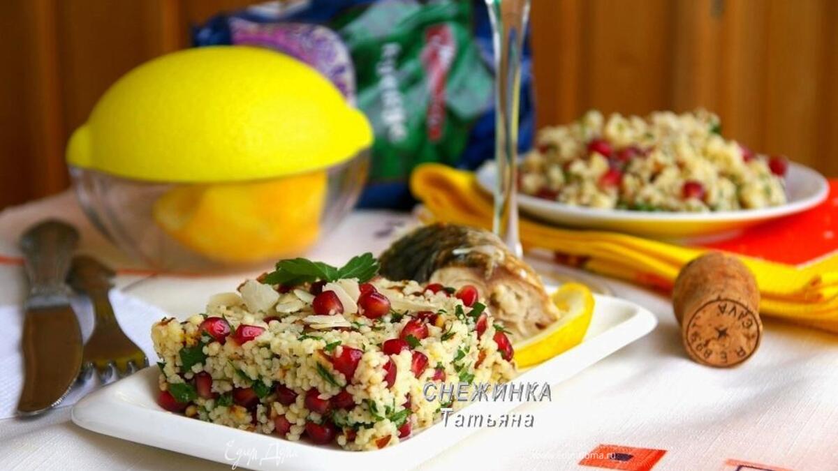 Танечка, какое вкусное блюдо, и подача!😃Кускус хорошо подружился с ароматами миндаля и лимона, и мятка тут хорошо вписалась 😉Прям дружба любовь 😍
