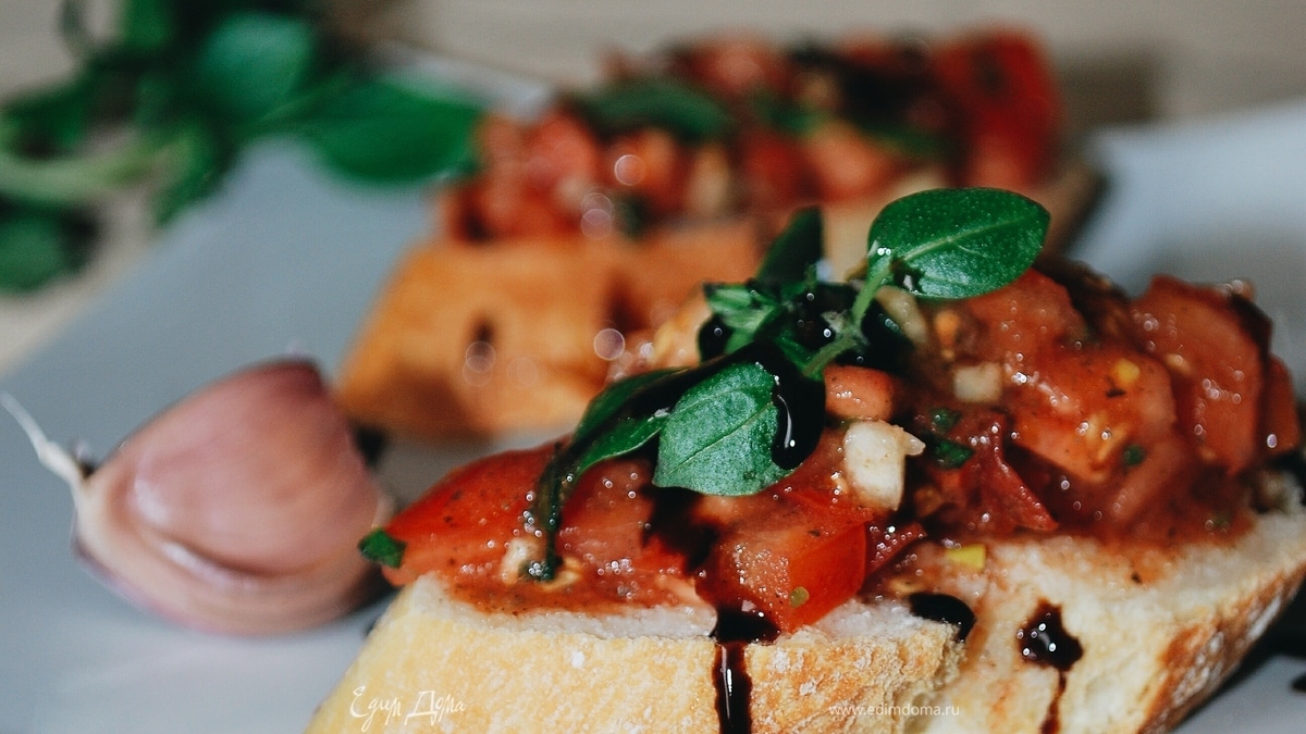 Брускетта с помидорами и базиликом. Очень вкусная итальянская закуска, готовить быстро и просто. Для приготовления лучше использовать традиционный хлеб чиабатта. Но можно и обычный хлеб, самое главное, чтобы он не был очень воздушным, выбирать лучше плотный хлеб. У меня французкий багет, с ним брускетта получается очень вкусной. Закуска подойдет к постному столу. Рекомендую использовать чесночное масло Biolio.