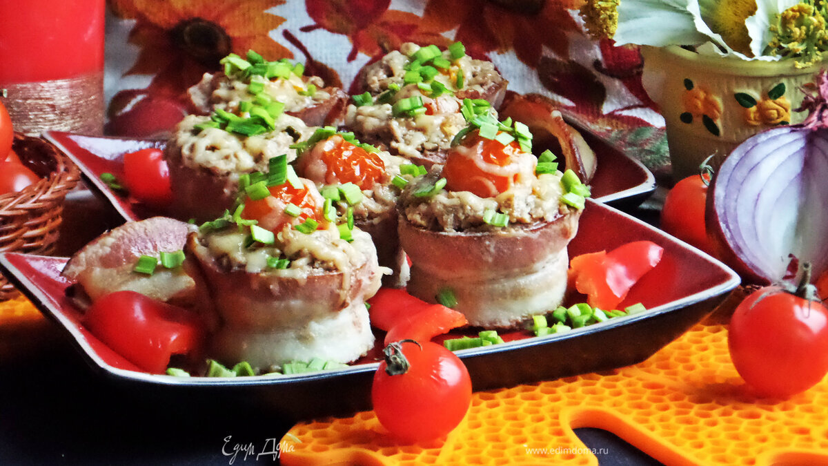 В ячейки формы для маффинов вдоль бортиков выстелить пластинки бекона. - Шаг 8