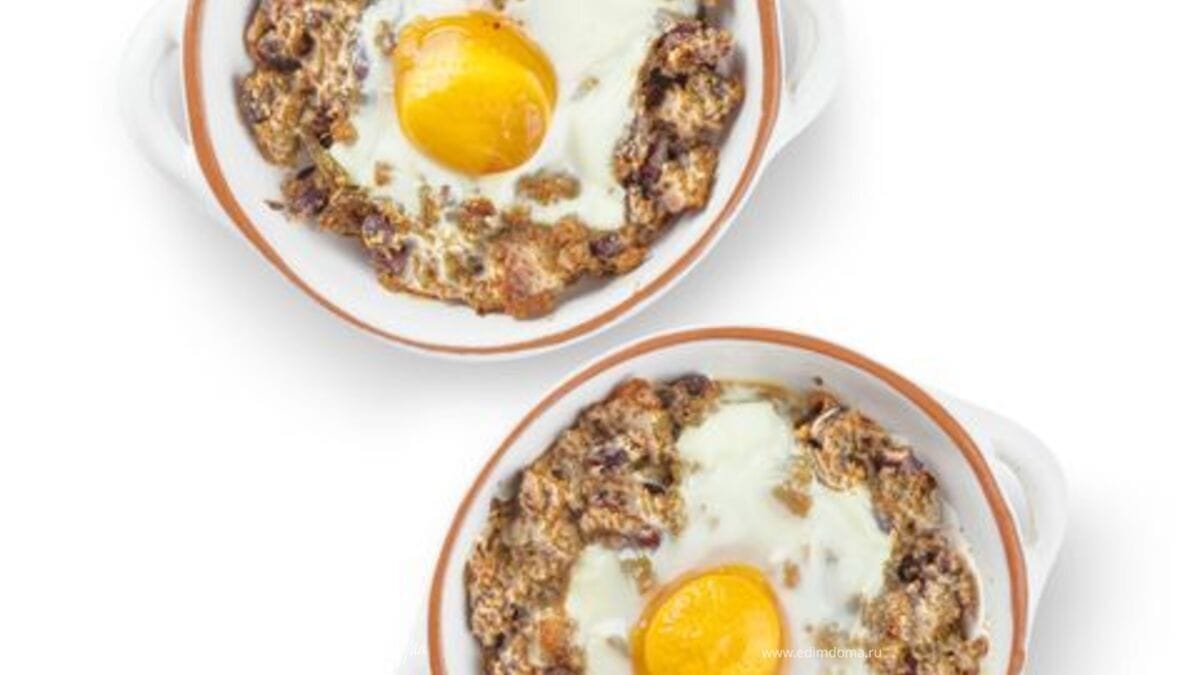 Оставшимся маслом смажьте четыре небольшие формочки для запекания и присыпьте их остатками сухарей. В формочки выложите фасоль с сыром и поставьте в разогретую до 190°С духовку на 12–15 минут. Достаньте запеканку из духовки, в центр каждой формочки аккуратно разбейте яйцо так, чтобы желток остался целым. Верните запеканку в духовку на 7–8 минут. Яйца должны успеть схватиться, и подавайте.