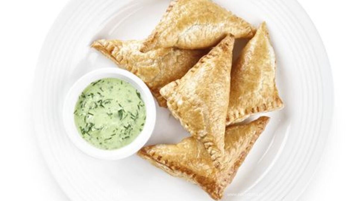 Для соуса очистите огурец от кожицы и измельчите его с зеленью, йогуртом и солью. Подавайте к пирожкам.