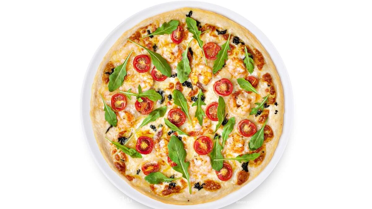 Отправьте в разогретую до 220 °С духовку на 7–10 минут. Горячую пиццу посыпьте свежей руколой.