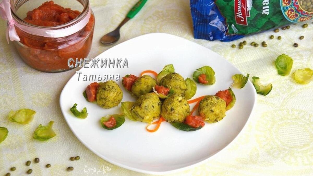 Фрикадельки из маша с банановым соусом в капустных лепестках