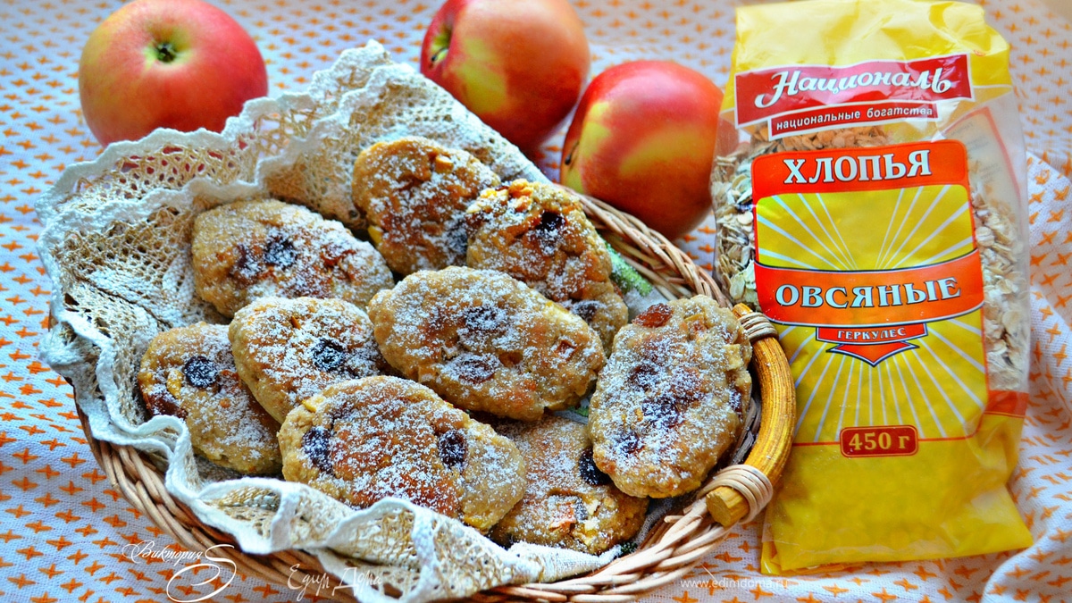 Овсяные коржики с яблоками и изюмом
