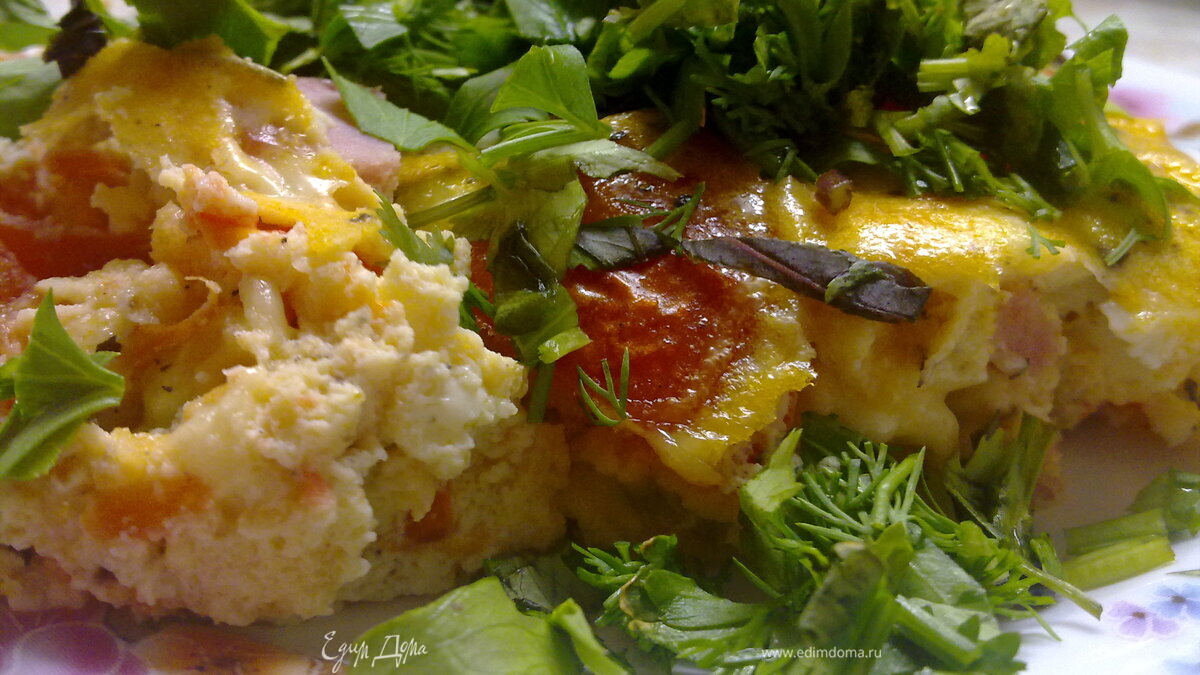 Сырный киш с помидорами, ветчиной и пряными травами
