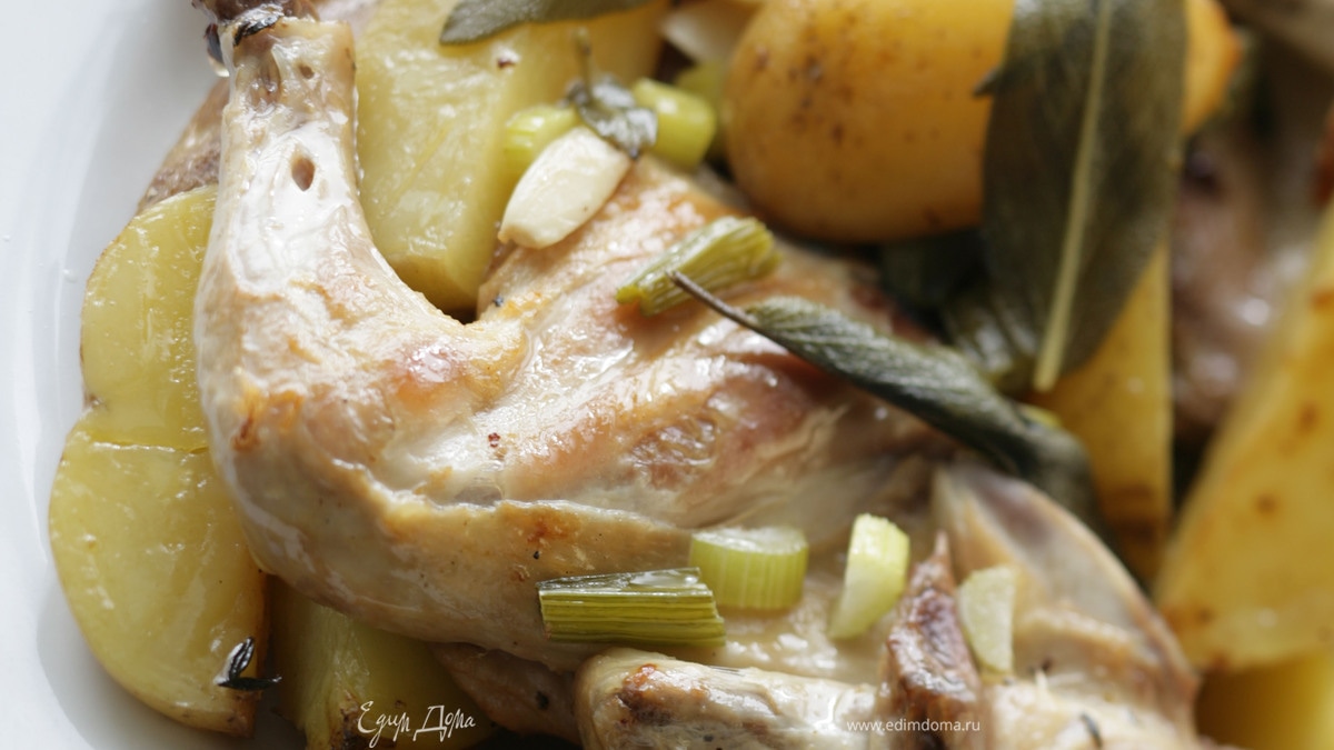 Куропатки — к празднику, а на каждый день — маленькие цыплята! Прелесть этого рецепта в том, что блюдо можно приготовить за день-два до нужного срока и держать в плотно закрытом контейнере в холодильнике, затем разогреть в теплой — не горячей! — духовке (t 150°С) или на медленном огне (в обоих случаях — под крышкой). Курица, порезанная на куски, тоже работает. И не бойтесь шалфея, он делает чудеса в соединении с птицей!